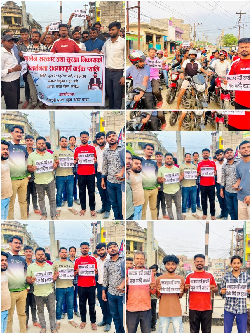 जेनजी युथ अफ बारा को संयोजक सौरभ पाण्डेको नेतृत्वमा आयोजना गरिएको उक्त र्याली दरबार रोडबाट सुरु भई भरत चोक, बालमन्दिर, श्री ३ चन्द्र रोड, देवकोटा चोक, गुप्ता पेट्रोल पम्प हुँदै कलैया बजार क्षेत्र परिक्रमा गर्दै सम्पन्न भएको हो। र्यालीमा सहभागी युवाहरूले सरकारका पछिल्ला गतिविधि र छानबिन प्रक्रियाप्रति समर्थन जनाउँदै भ्रष्टाचार नियन्त्रणका लागि कडा कदम चाल्नुपर्ने माग राखेका थिए।