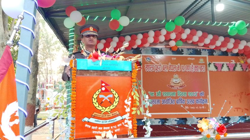 कार्यक्रममा सशस्त्र प्रहरी बल १२ नम्बर गणका गणपति सशस्त्र प्रहरी उपरीक्षक (एसपी) विशाल सिलवालले जिल्लाको समग्र सुरक्षामा सशस्त्र प्रहरीको महत्वपूर्ण भूमिका रहेको बताए। उनले सीमा सुरक्षा, अपराध नियन्त्रण तथा निगरानी कार्यलाई थप सुदृढ बनाउँदै लगिएको जानकारी दिए।