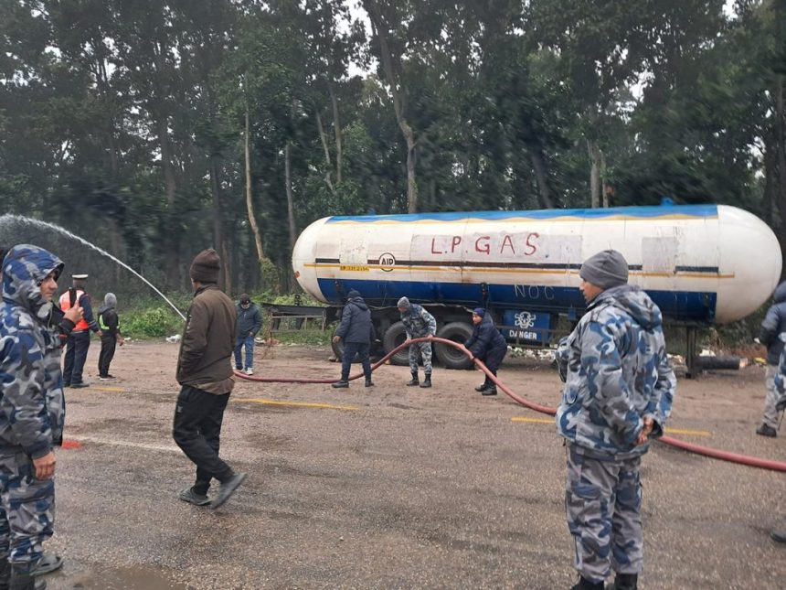 दुर्घटनापछि ग्यास चुहावट देखिएपछि सम्भावित आगलागीको जोखिमलाई मध्यनजर गर्दै दमकल परिचालन गरिएको थियो। दमकलले निरन्तर पानी छर्किंदै सुरक्षा सुनिश्चित गरेपछि दुईवटा क्रेन प्रयोग गरी ग्यास बुलेट हटाइएको हो। त्यसपछि राजमार्गमा परेको ग्यास र पानीका अवशेष सफा गरी सवारी सञ्चालन योग्य बनाइएको प्रहरीले जनाएको छ।