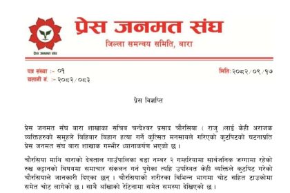 बारा, १७ पुस २०८२ — प्रेस जनमत संघ, बारा शाखाका सचिव चन्द्रेश्वर…
