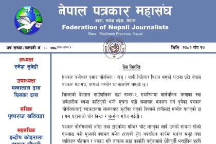 पत्रकारमाथि भएको आक्रमणप्रति नेपाल पत्रकार महासंघ बारा शाखाको गम्भीर ध्यानाकर्षण