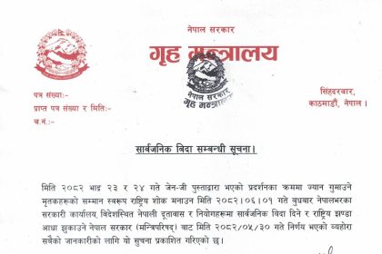 काठमाडौं - ३० भदौ । प्रहरी प्रधान कार्यालयले जेनजी आन्दोलनका क्रममा शहादत…